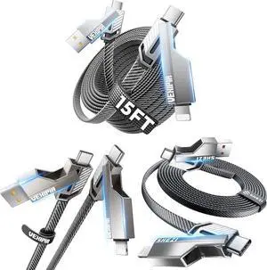 4-in-1 Flat Nylon Braided USB C Cable (3FT+5FT+15FT), 3 Pack 60W Cable Bundle