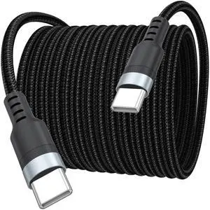 20 ft USB C Cable Fast Charging 60W, Long USBC to USB-C Charge Cord 20 Foot Type C 2.0 480Mbps Data Transfer Black Braided Male for PS5, Xbox, iPhone 17/16/15, Galaxy S25/24/23, Security Camera