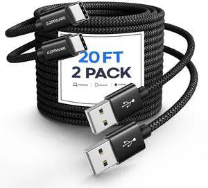 Long USB C Cable [-] 20Ft USB C Cable |Durable Double Braided Nylon| USB A to USB C Cable Fast Charging Cord Compatible with iPhone 15 Pro Max Samsung Galaxy Moto LG & More USB-C Devices