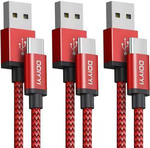 DDIYYI USB C Cable, 3-Pack Red (3ft+6ft+6ft) USB A to USB C Charger Cable, Type C Braided Cord Compatible with Samsung Galaxy A03S A10e A15 A25 A52 A53 A54 A55, Note 20 10 9 Ultra, PS5, Pixel, Moto,