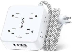 Surge Protector Power Strip - CHCORE 5Ft Braided Extension Cord with 8 Outlets with 4 USB (2 USB C) Charging Ports, Flat Plug Multi Plug Outlet Extender Charging Station for Home Office, ETL, White