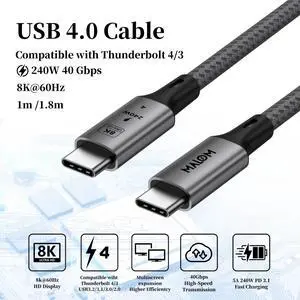 MALOM USB C to C 4.0, 40Gbps for Thunderbolt 4 Cable, 240W Fast Charging, 8K@60Hz, 4K@144Hz, USB C Display Cable, USB4 for iPhone 16/15 Series, MacBook Air, Samsung Gray