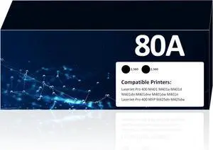80A Black Toner Cartridges 2 Pack Compatible for HP 80A CF280A 80X CF280X Toner Cartridges Compatible for HP Laser Jet Pro 400 M401 M401a M401d M401dn M401dne M401dw M401n MFP M425dn M425dw Printer