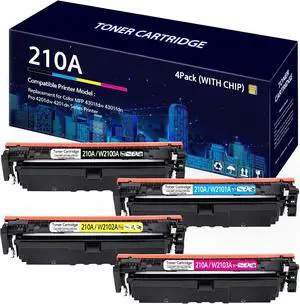 4-Pack 210A W2100A Ultra High Yield Compatible 210A W2100A Toner Cartridge Replacement for Color MFP 4301fdw 4301fdn Pro 4201dw 4201dn Series PrinterBK/C/Y/M (210A-4PACK)