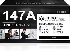 147A High Yield Toner Cartridge (1-Pack,Black) Compatible 147A 147X Toner Cartridges Replacement for HP Laser Enterprise M610 M611 M612 Laser Enterprise MFP M634 M635 M636 | W1470A