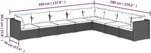 vidaXL Patio Lounge Set 8 Piece with Cushions Poly Rattan Black Furniture