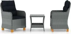 vidaXL Patio Lounge Set 3 Piece Chair with Cushions Poly Rattan Light Gray