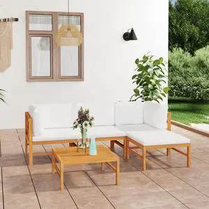 vidaXL Patio Furniture Set 5 Piece Lounge Set with Cream White Cushions Bamboo