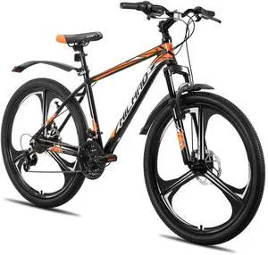 HILAND 26 Inch Mountain Bike for Men Women Adults, 18-Speed, Disc Brake, Lightweight Aluminum Frame, 3 Spokes MTB Black Orange