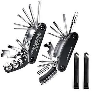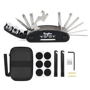 Bike Repair Tool Kit, 16 in 1 Bicycle Multitool with Tire Levers Hex Spoke Wrench, Multi Function Accessories Set for Road Mountain Bikes