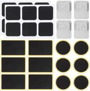 40 Pcs Bicycle Tire Repair Kit Glueless Bike Tube Patche Includes 36Pcs Self Adhesive Round Square Rectangle Patches and 4Pcs Metal Rasps with Box for Road Mountain Bikes Cycling