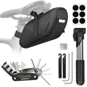 Bike Repair Kit, Bike Seat Bag, Waterproof Bicycle Saddle Bag, 16-in-1 Bike Multitool, Bicycle Tire Repair Kit, 4mm and 5mm Allen Wrenches for Mountain Road Bike, MTB