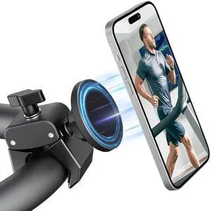 Phone Holder for Bike, Magnetic Phone Mount Clamp, 20X N52 Magnets, 360° Rotate & ±45° Tilt, for Treadmill/Spin Bike/Stroller/Shopping Cart/Golf Cart, Compatible w/ MagSafe iPhone 1217 Series