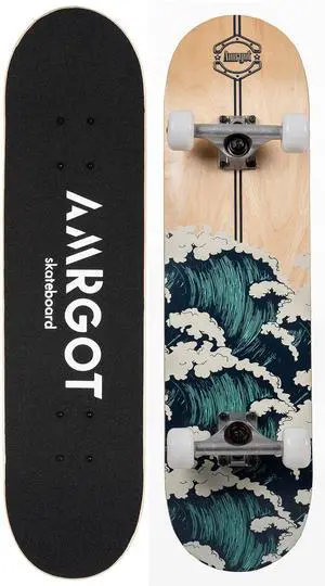 Amrgot Skateboards for Beginners,31 * 8 inches Complete Skateboards for Kids,Boys,Girls and Adults,7 Layer Maple Wood,Double Kick Deck Concave Standard and Tricks Skateboard