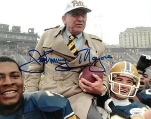 Johnny Majors signed Pittsburgh Panthers Vintage Color 8x10 Photo- JSA (1996 Final Season Carry Off)