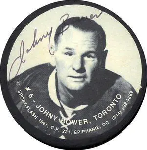 Johnny Bower signed 1991 Toronto Maple Leafs Sports-Flash NHL Photo Puck- JSA #RR76694