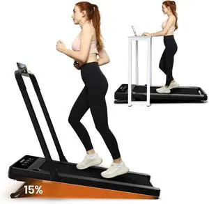 Foldable Walking Pad with Auto Incline, Under Desk Treadmills for Home with 15% Incline, 2 in 1 Treadmill with Remote Control, Incline Walking Pad Treadmill with HIIT Modes, Low Noise