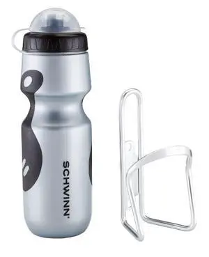 Sport Water Bottle with Holder for Bicycle, 23 oz, BPA-Free, No-Slip Grip, Dust Cap Lid, Cage Easily Mounts to Bike, Bike Water Bottle Holder Combo