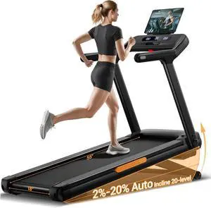 UMAY Fitness 20% Auto Incline Treadmills for Home, 42.5"×16.2" Extra-Wide Running Area,Treadmill 400LB Capacity, 3.5HP Quiet Brushless& 8.7 MPH Speed Workouts