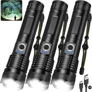 Flashlight Rechargeable 99,000 High Lumens - 3 Pack Bright LED Flash Light with 5 Modes, Handheld Waterproof Linterna for Camping, Home, OutdoorBrand: KaitoPart Number: M085-3PSelling Unit: PackSpecifications: 12 hours, Aluminum, lithium_ion, 1, 1.3 L x 1.9 W x 6.5 H inches, 0.68 kilograms, waterproof, 3 years., ALSTU, M085-3PModel #: 746375388254