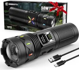 Flashlights High Lumens Rechargeable, 1000000 High Lumens Super Bright Handheld LED Flash Light, Powerful Emergency Linternas, Waterproof, Long Lasting, for Hiking Camping GiftBrand: KaitoPart Number: A06Selling Unit: PackSpecifications: Rechargeable, High Lumens, Weatherproof, 12 hours, Aluminum, alkaline, 3, 2.36 L x 2.36 W x 7.87 H inches, 0.662 kilograms, waterproof, 1 year., HMFREE, Handheld FlashlightModel #: 157607270016