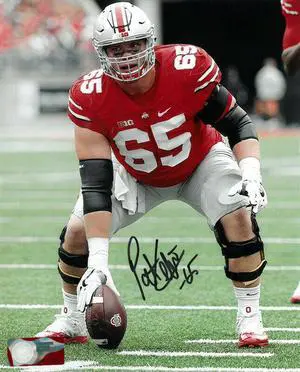 Pat Elflein signed Ohio State Buckeyes 8X10 Photo #65 (vertical/red jersey)