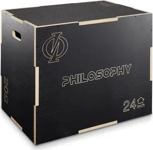 Philosophy Gym 3 in 1 Non-Slip Wood Plyo Box, 30" x 24" x 20", Black, Jump Plyometric Box for Training and Conditioning