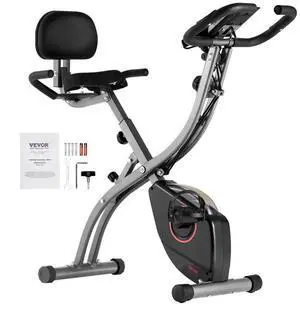 VEVOR Folding Exercise Bike, Foldable Fitness Stationary Bike, Adjustable Magnetic Resistance Stationary Bike, Upright Indoor Cycling Bike for Home Gym Workout, Comfortable Seat Cushion, LCD Monitor