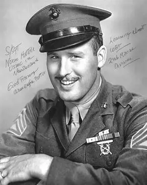 Major Norman Hatch signed WWII Iwo Jima Vintage B&W 8x10 Photo- PSA #AD38757 (Academy Award/Oscar)