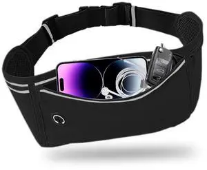 Slim Running Belt for Women Men,Runners Fanny Pack Phone Holder,Money Belt,Running Gear Accessories,with 3 Pockets(Black)