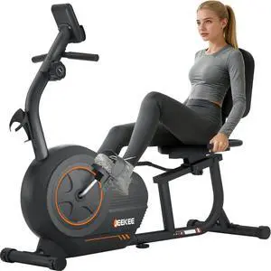 JEEKEE Recumbent Exercise Bike for Seniors,Stationary Bikes for Home, 400LB Capacity & 16 Levels Magnetic Resistance, Heart Rate Handle