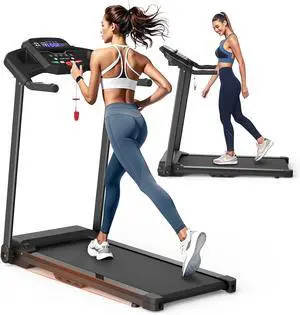Folding Treadmill for Home, 2.5HP Quiet Motor, 300 LBS Capacity, Compact Design with Cup&Pad Holder, LED Display,Safety Key,Heart Rate Sensor,0.5-7.5MPH Speed