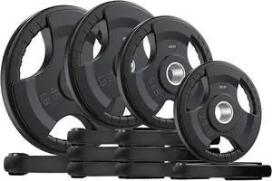 SPART Weight Plate 2-Inch Rubber Coated Olympic Grip Plate for Barbell,Solid Cast Iron Weight Plates in Pairs or Single for Strength Training,Weightlifting,Crossfit,Home Gym(5LB/10LB/25LB/35LB/45LB)