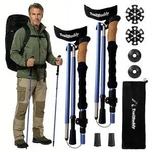 Foldable Trekking Poles Ultralight 7075 Aluminum, EVA & Cork Grip Collapsible Hiking Poles Lightweight Adjustable Walking Sticks for Men, Women, Seniors & Travel