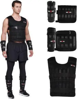 Weighted Vest Set 44LB for Men & Women, Adjustable Workout Weight Vest with Steel Plates, Weighted Training Vest with Wrist Weights and Ankle Weights for Strength Training, HIIT, Rucking & Cardio