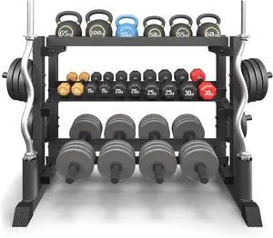 3-Tier Dumbbell Rack, 1100LB Capacity Adjustable Weight Rack for Home Gym, Heavy-Duty Weight Stand for Dumbbells Kettlebells & Weight Plates(Rack Only)