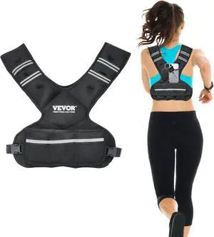 VEVOR Weighted Vest, 12/16/20/30 lbs Weight Vest with Reflective Stripe, Adjustable Buckle Body Weight Vest, Workout Equipment for Strength Training, Running, Jogging, Fitness, and Weight Loss