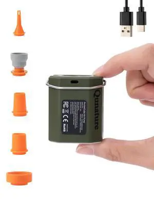 Mini Portable Air Pump for Inflatables with 3-Mode Camping Light, 800mAh Type-C Rechargeable 45g Lightweight Electric Air Pump with 5 Nozzles for Inflatables,Dark Green