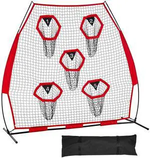7 x 7 ft Football Trainer Throwing Net, Training Throwing Target Practice Net with 5 Target Pockets, Knotless Net Includes Straps and Portable Carry Case, Improve QB Throwing Accuracy, Red