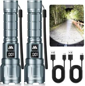 TrixHub Rechargeable LED Flashlights High Lumens 2Pack, Super Bright Zoomable Handheld Flash Light with LCD Digital Display, Powerful Emergency Linternas, Waterproof, Long Lasting, for Hiking CampingBrand: Accessory PowerPart Number: TH003Selling Unit: PackSpecifications: Adjustable Focus, Adjustable Light Modes, Durable, High Lumens, Aluminum, lithium_ion, 1.57 L x 1 W x 6.45 H inches, 1 year manufacture., TrixHub, TH003Model #: 102447782190