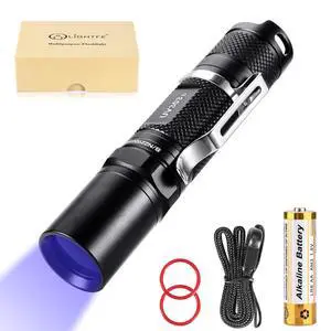 Black Light 365nm UV Flashlight UV101D with High Power UV LED Source Keychain Light Powered by 1 AAA Battery for UV Glue Curing Light, Pet Urine Detector Light, AC Leak DetectorBrand: KaitoPart Number: UV101-365nmSelling Unit: PackSpecifications: 1 hours, Aluminum For Flashlight, alkaline, 1, 2.55 L x 0.65 W x 0.65 H inches, 0.02 pounds, waterproof, One-year warranty., LIGHTFE, UV101-365nmModel #: 860947949646