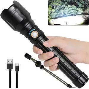 Rechargeable Brightest LED Flashlight, 90,000 High Lumens Super Bright Powerful Flashlight with 5 Modes, IPX7 Waterproof Handheld Large Flash Light for Emergencies Camping