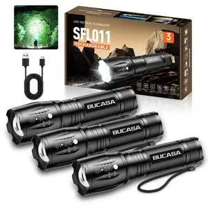 3 Pack Rechargeable Flashlights High Lumens, Brighter Small Flashlight Powerful Tactical Flashlights Rechargeable, Waterproof LED Flashlight with 3 Modes Zoomable for Camping Emergency
