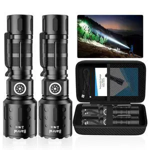 Flashlight Rechargeable LED High Lumens, 99,000 Lumens Super Bright Flash Lights with 5 Modes, AdjustableWaterproof Powerful Linterna for Home, Camping(2 Pack)