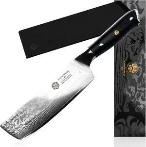 Kessaku 7-Inch Nakiri Vegetable Cleaver Knife - Dynasty Series - Forged 67-Layer AUS-10V Japanese Damascus Steel - G10 Full Tang Handle with Blade Guard