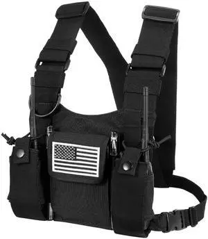 Radio Chest Harness Chest Front Pack Pouch Holster Vest Rig for Two Way Radio Walkie Talkie(Rescue Essentials) (Black)