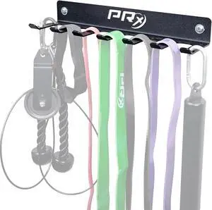 PRx Performance Wall-Mounted Gym Rack Organizer Heavy-Duty Fitness Equipment Storage for Resistance Bands, Jump Ropes & Lifting Belts Space-Saving 7 Hook Shelf, Made in USA Compact Design - Black