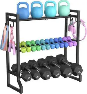 VOPEAK 3-Tier Adjustable Dumbbell Rack, 31-Inch Weight Rack for Home Gym with 4 Hooks, Home Gym Storage for Kettlebells, Space-Saving Dumbbell Stand - 400LB Capacity (Rack Only)