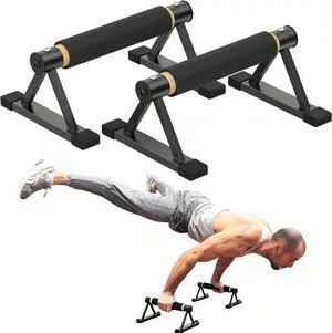 Wood Parallettes Push Up Bars, Solid Wooden Handstand Bars with Anti-Slip Grip, Sturdy Metal Bracket Supports 600 lbs for Calisthenics, Fitness and Floor workout