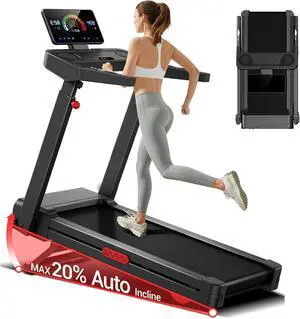 UMAY Fitness 20% Auto Incline Treadmills for Home, 42.5"×16.2" Extra-Wide Running Area,Treadmill 400LB Capacity, 3.5HP Quiet Brushless& 8.7 MPH Speed Workouts